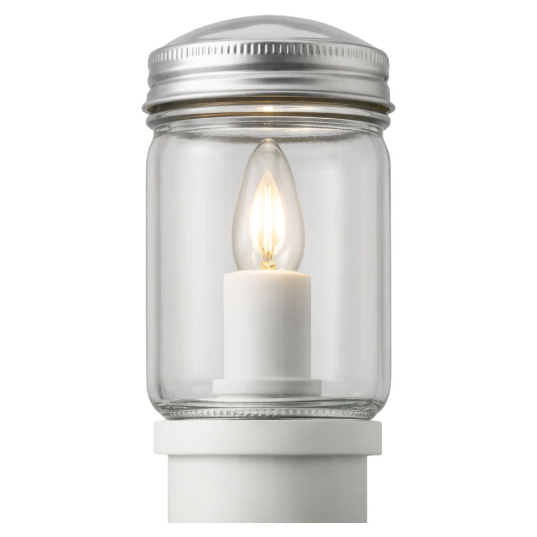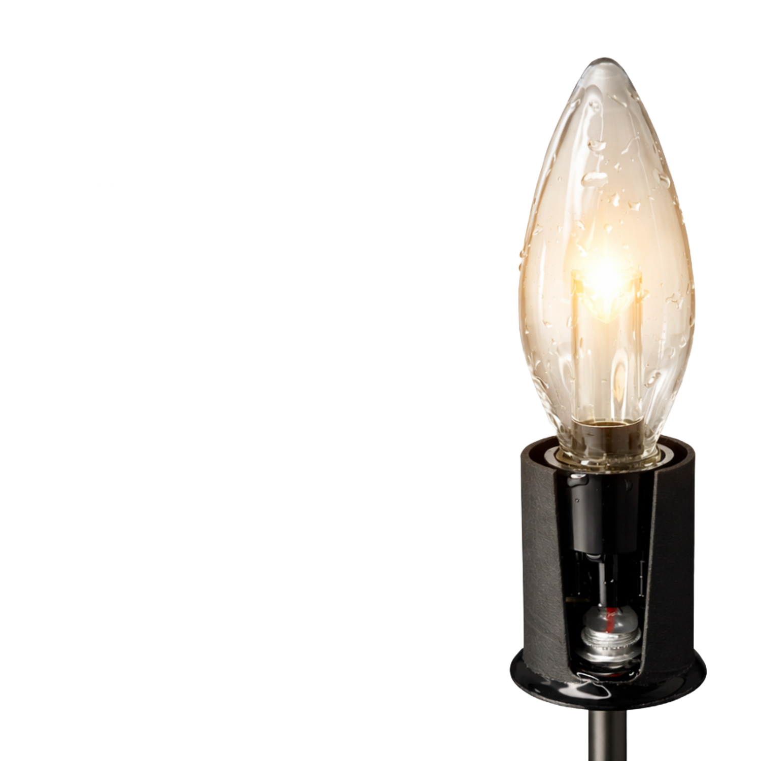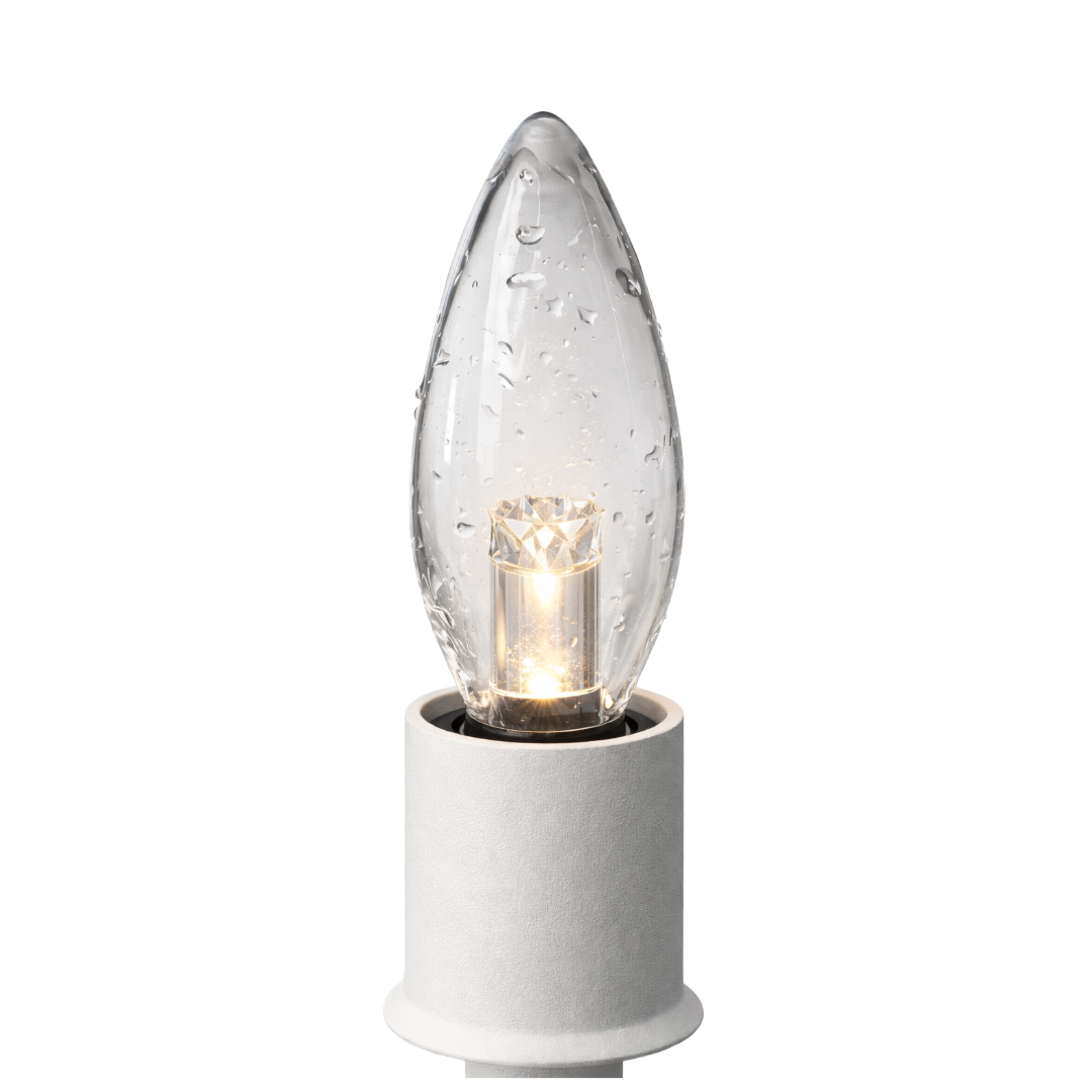 exhibit a: The luminaire's candelabra lamp is covered by a metal cap, the socket is shielded with a ceramic sleeving, and the entire system is enclosed in borosilicate glass to isolate it from the real world.